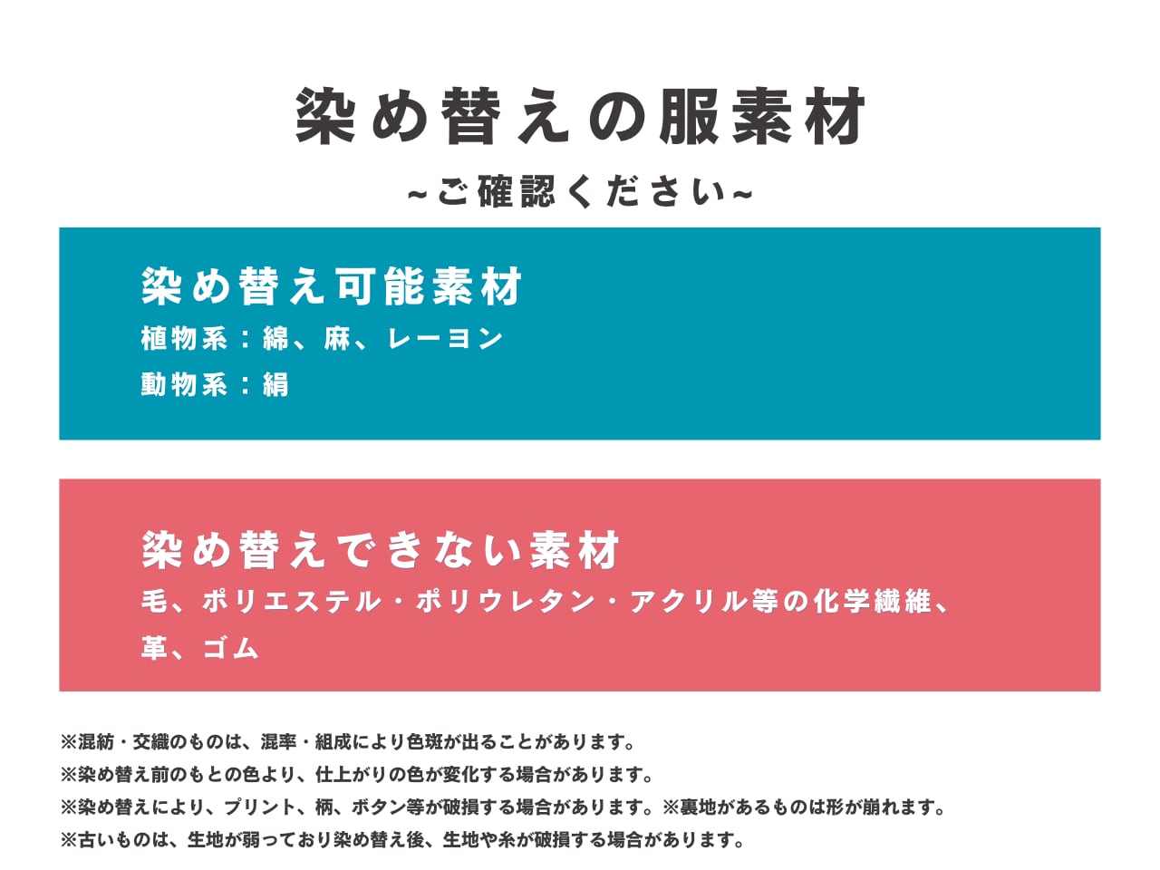 数年前に購入した色落ちしたお気に入りの服や汚れてしまった服等、染め替えてもう一度着てみませんか?